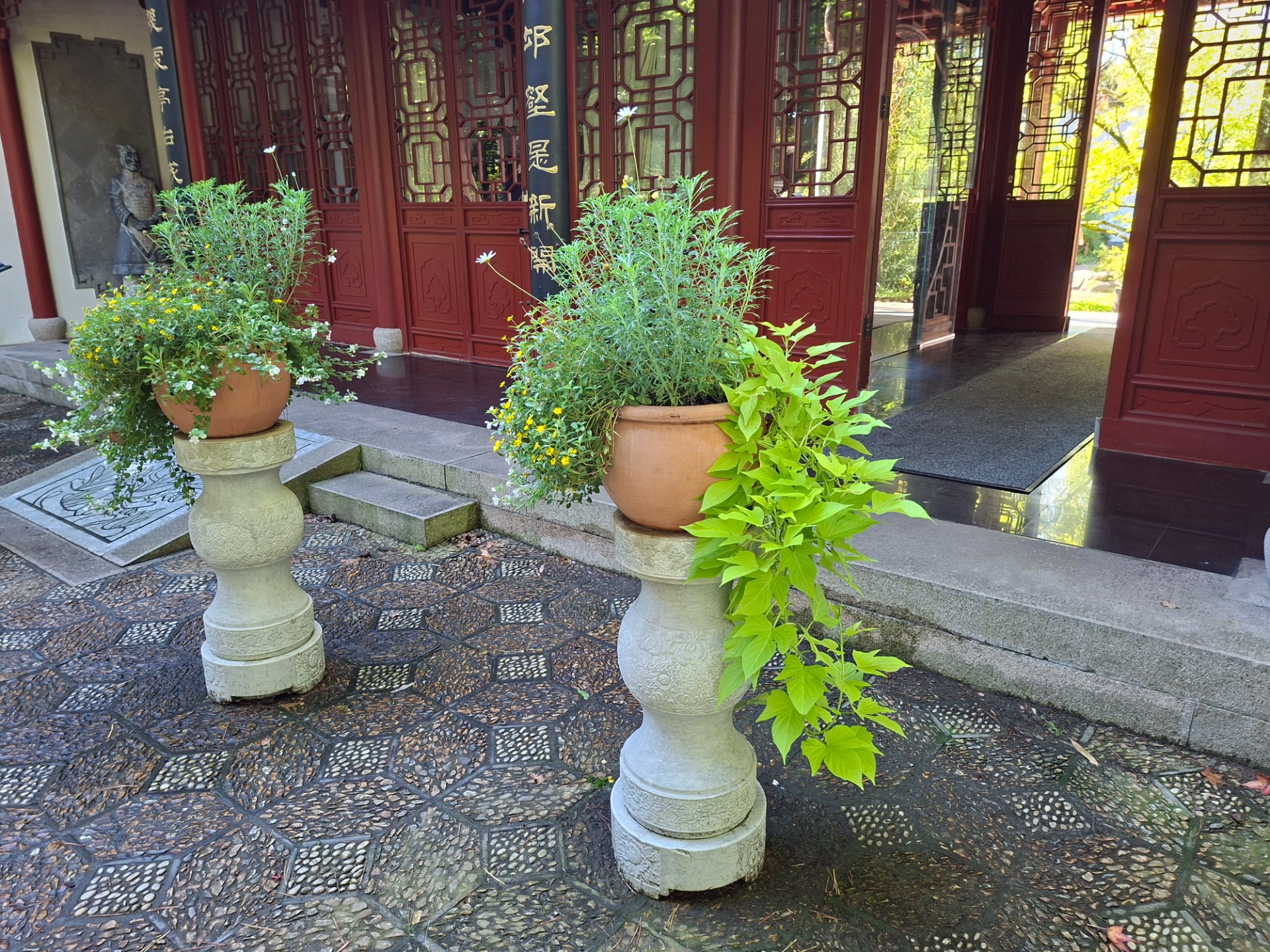 So stehen Chrysanthemen, die erst dann blühen, wenn alle anderen Pflanzen schon verblüht sind, im Chinesischen Garten für ein langes Leben.