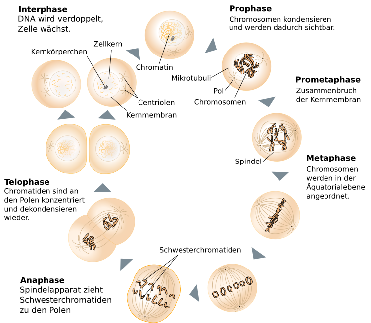 (Bild oben: Mitose: Ergebnis = 2x diploide Tochterzellen)