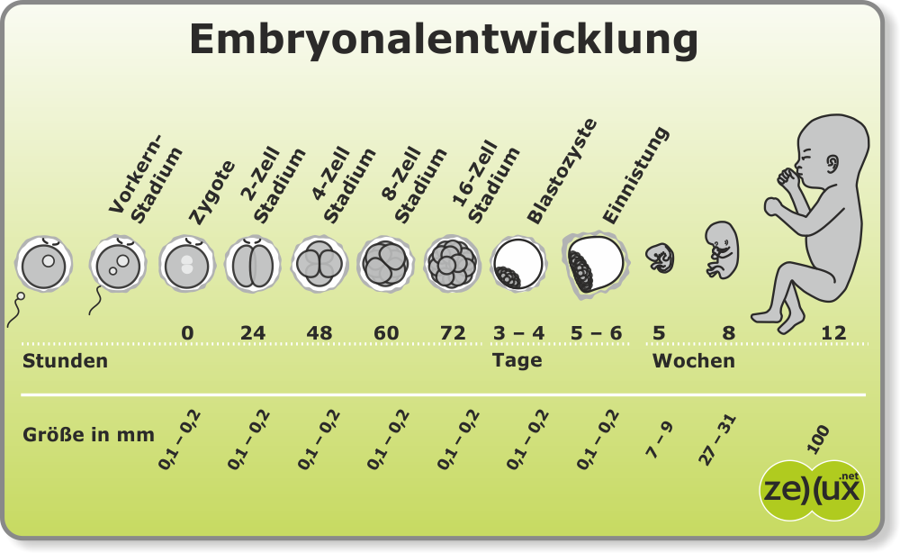 - Befruchtung der Eizelle (durch Samenzelle) = Zygote ("Stunde Null")