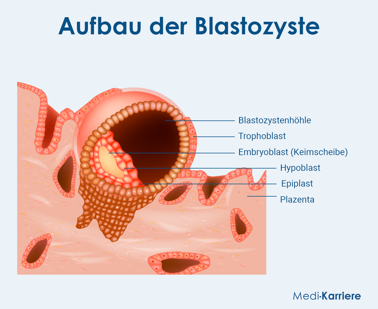 *Eine Blastozyste ist ein Stadium der frühen Embryonalentwicklung, das etwa fünf bis sechs Tage nach der Befruchtung erreicht wird. Sie besteht aus einer inneren Zellmasse (dem Embryoblast, aus dem der Fötus entsteht) und einer äußeren Hülle (dem Trophoblast, aus dem die Plazenta entsteht), umgeben von einer flüssigkeitsgefüllten Höhle.