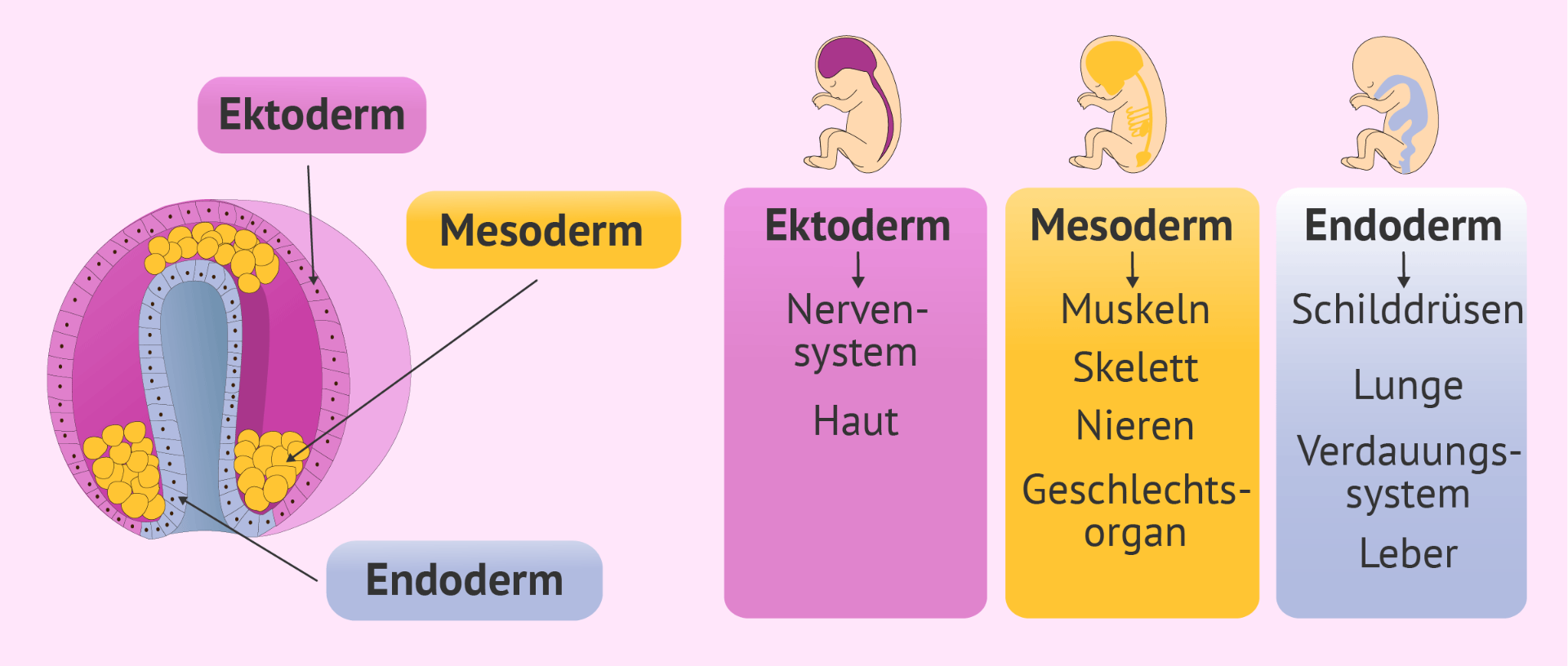 Diese 3 Keimblätter sind die Grundlage für die Entwicklung aller Gewebe und Organe des späteren Körpers!