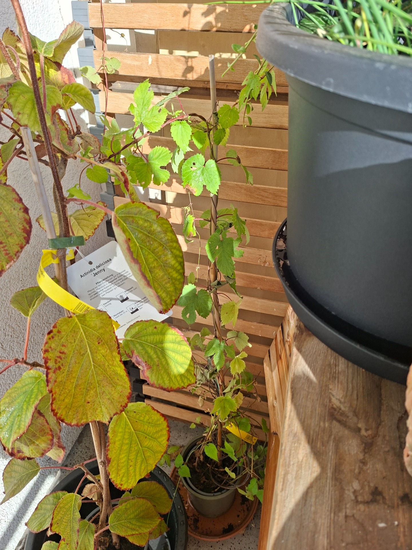 - Rankhilfe: Hopfen ist eine Kletterpflanze und benötigt eine Rankhilfe wie ein Spalier, ein Netz oder Seile.