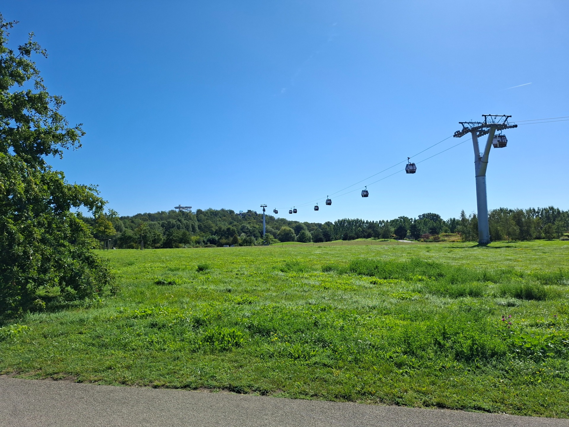 Die sieben Stahlgittermasten halten ein Drahtseil, das die Benutzer durchschnittlich 30 Meter über der Parklandschaft schweben lässt. Die Geschwindigkeit beträgt maximal sechs Meter pro Sekunde.