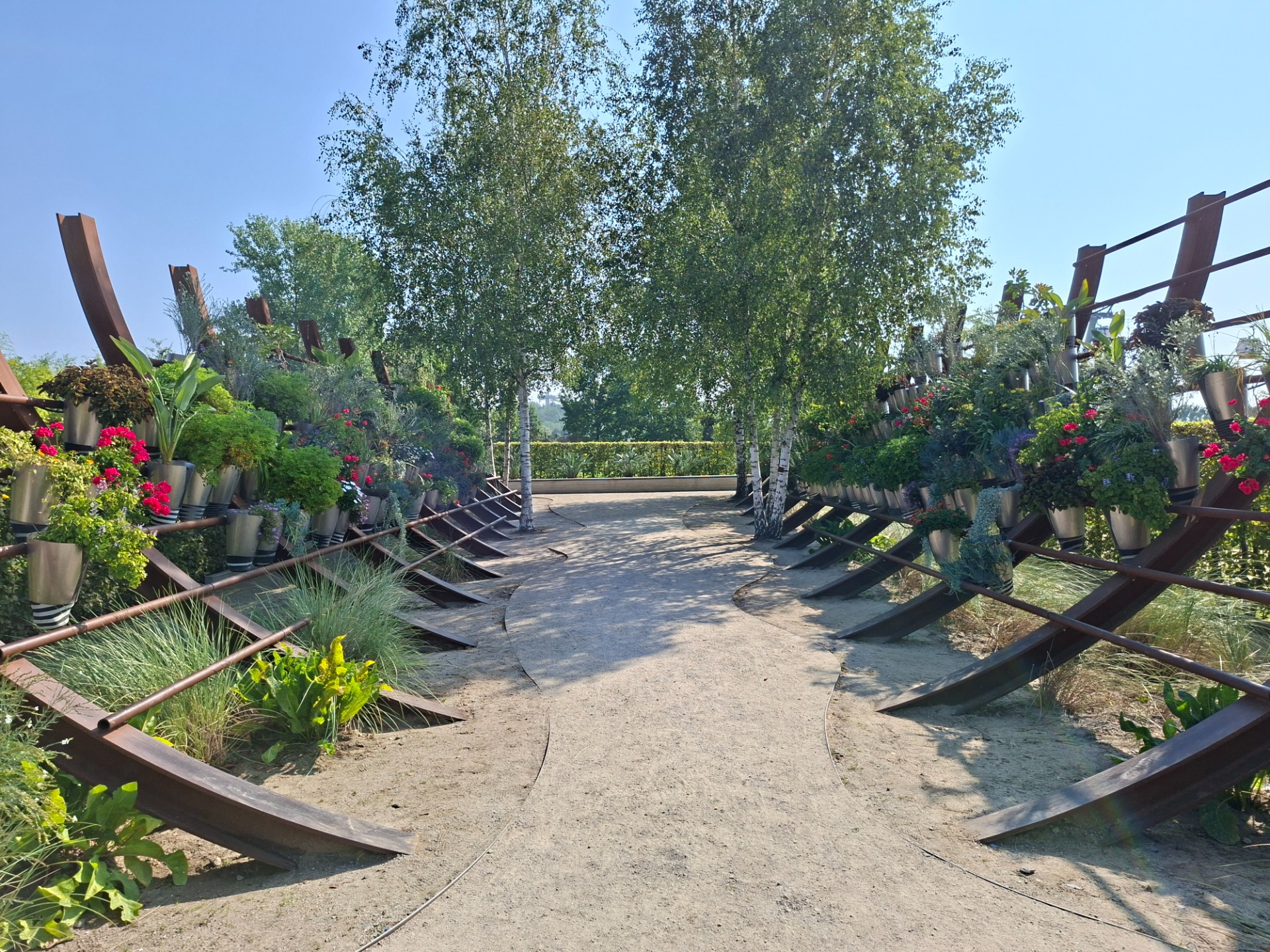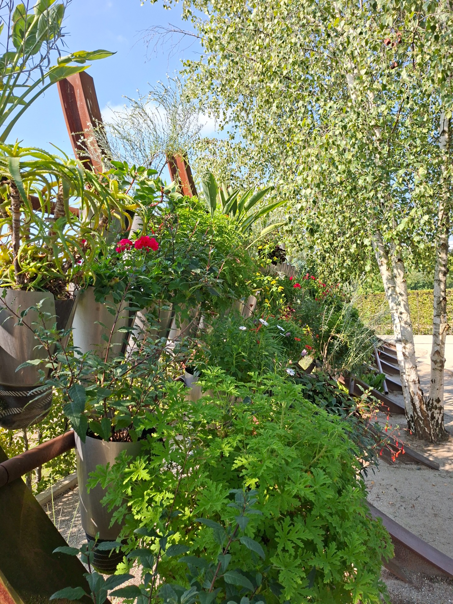 In jedem Jahr blühen darin viele verschiedene Blumen Afrikas, die du als Zimmerpflanzen oder Sommerblumen kennst. Zwischen den Metallstangen des Schiffsrumpfes wachsen feine Dünengräser und erzählen von der Geschichte Südafrikas.